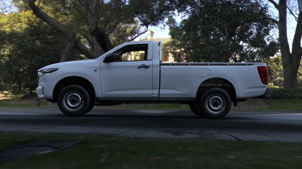 A Mazda BT-50 – Cabine Simples adequa-se perfeitamente a terrenos exigentes, uma vez que possui tracção 4×4, bloqueio do diferencial traseiro e uma altura ao solo de 220 mm. Possui, também, uma capacidade de imersão em água de até 800 mm, tornando-a adequada para situações mais desafiantes, como atravessar uma zona alagada.