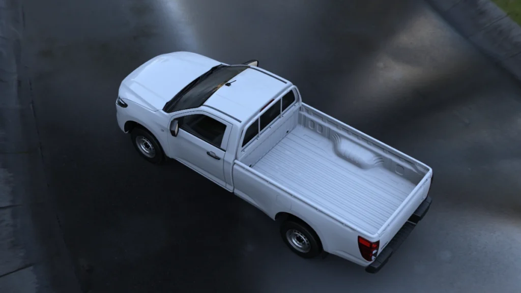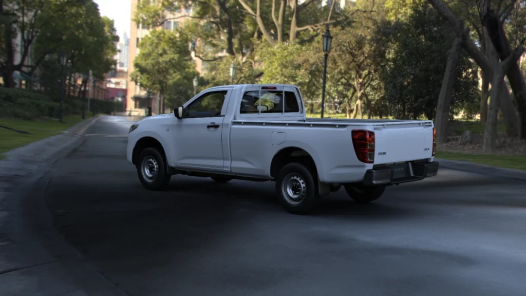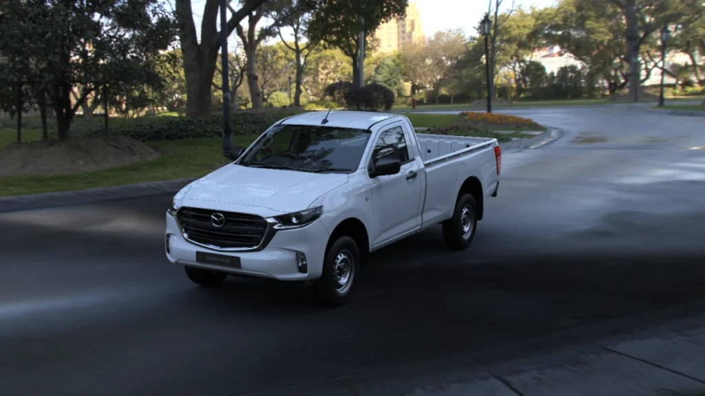 A Mazda BT-50 – Cabine Simples inclui airbags, ABS, bloqueio do diferencial traseiro, travões ventilados frontais de 16’’ e travões traseiros de tambor de 15”, garantindo segurança tanto no transporte de cargas quanto em terrenos mais exigentes.
