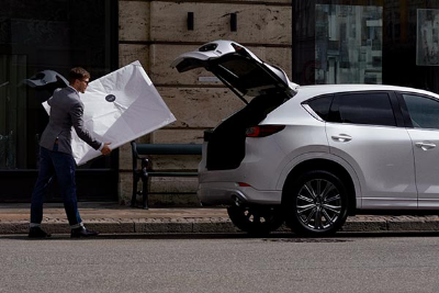 O Mazda CX-5 possui 438 litros de espaço de bagageira, valor esse que aumenta para 1340 litros, com o rebatimento da segunda fila.